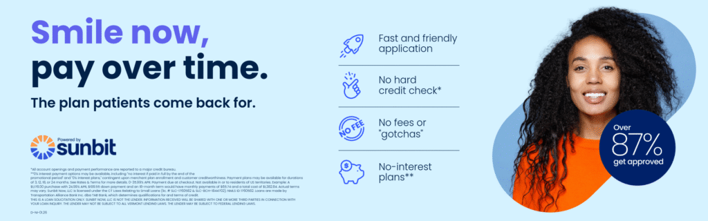 Designed for dental procedures up to $10,000, Sunbit is a great choice for patients with lower credit scores. With quick and easy approval, Sunbit offers affordable payment options to ensure you can receive the care you need without financial stress.